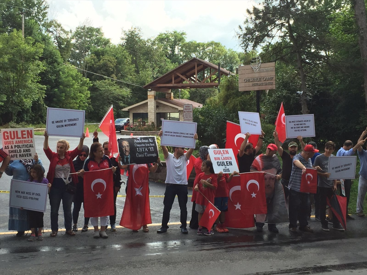 NEW YORK (AA) - ABD'deki Türkler, Fetullahçı Terör Örgütü (FETÖ) elebaşı Fetullah Gülen'in, ABD'nin Pensilvanya eyaletindeki malikanesinin önünde protesto gösterisi düzenledi.