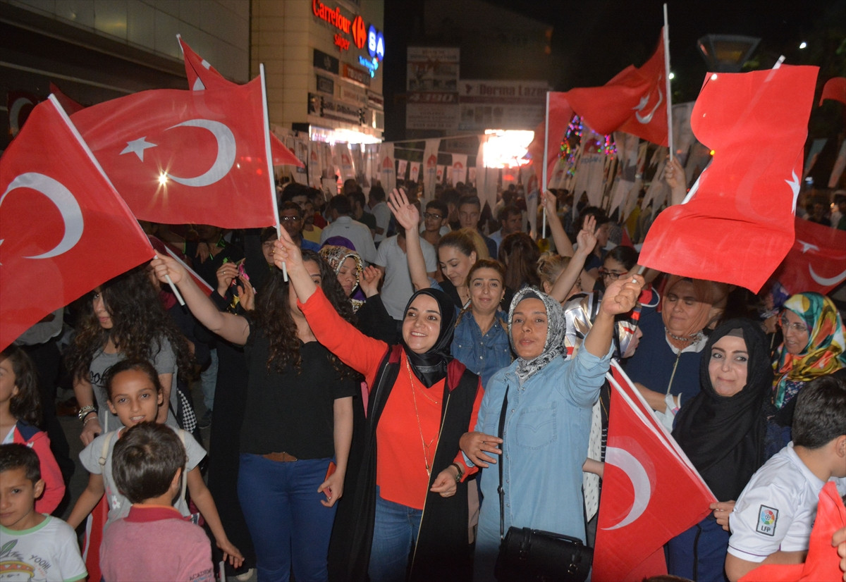 Vatandaşlar, "15 Temmuz darbecilere mezar olacak" ve "dik dur eğilme bu millet seninle" sloganları atarak darbeyi lanetledi.