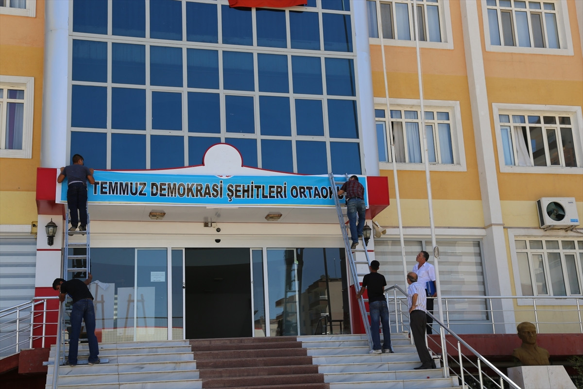 Siirt Milli Eğitim Müdürlüğü görevlileri, Bahçelievler Mahallesi'nde Özel Celal Değer Okulunun tabelasını indirip yerine "15 Temmuz Demokrasi Şehitleri Ortaokulu" tabelası ile Türk bayrağı astı.