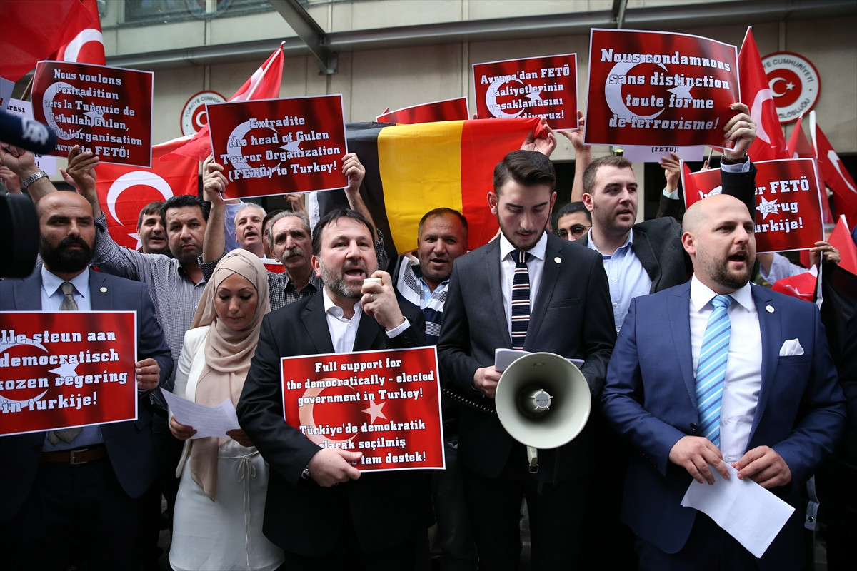 Ülkedeki 20'den fazla STK'yı temsilen çok sayıda Türk kökenli Belçika vatandaşı, darbe girişimini protesto etmek için bir araya geldi.