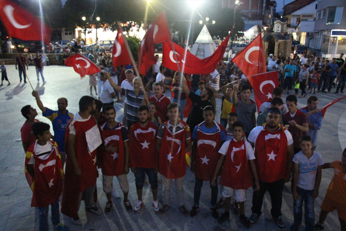 RADOVİŞ (AA) - Makedonya'nın doğusundaki Radoviş şehrinde, Fetullahçı Terör Örgütü'nün (FETÖ) darbe girişimine tepki göstermek ve Cumhurbaşkanı Recep Tayyip Erdoğan'a destek olmak amacıyla gösteri düzenlendi.