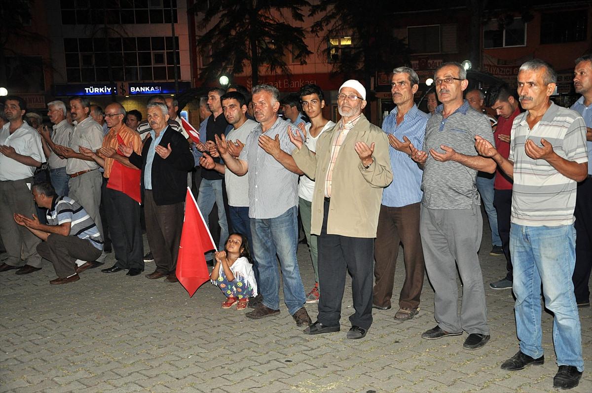 Safranbolu Misak-ı Milli Meydanı'nda toplanan vatandaşlar toplu halde yatsı namazı kıldı. Namazın ardından FETÖ'nün darbe girişimi sırasında şehit olan vatandaş, asker ve polisler için mevlit okundu.
