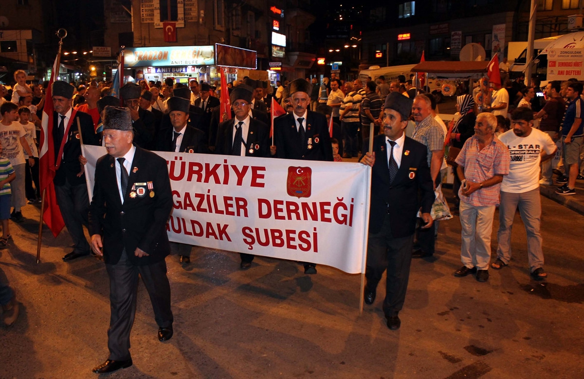 Türkiye Muharip ve Gaziler Derneği Zonguldak Şubesi yönetim ve üyeleri de demokrasi nöbeti tuttu.