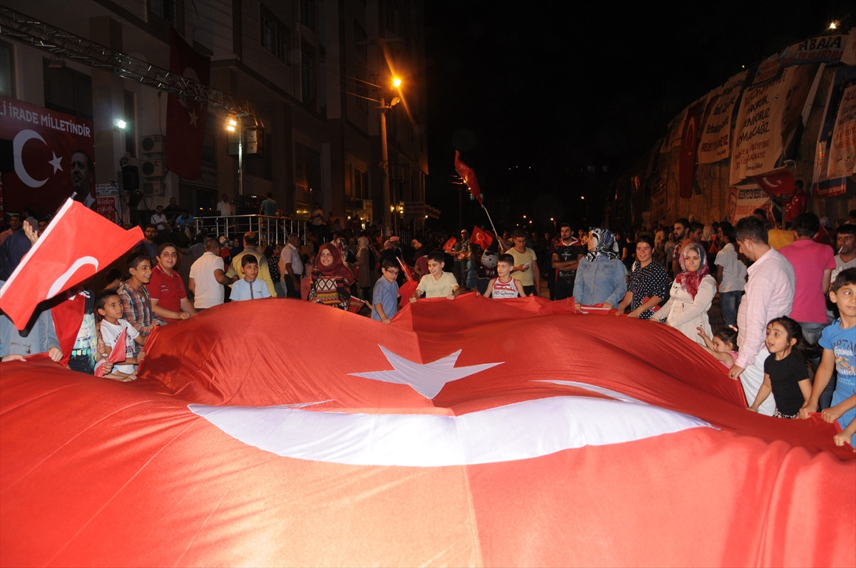 MARDİN (AA) - Mardin'de FETÖ'nün darbe girişimine tepki gösteren vatandaşlar, "demokrasi nöbetini" sürdürüyor.
