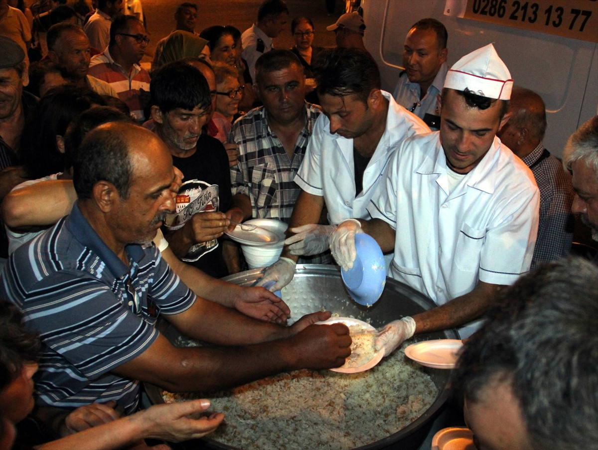 Şehitler için saygı duruşunda bulunan ve İstiklal Marşı'nı okuyan vatandaşlara, hayırseverler tarafından pilav, ayran, lokma ve su ikram edildi.