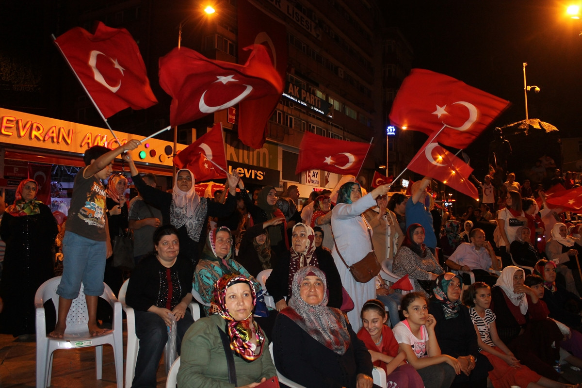 Vatandaşlar, ellerindeki Türk bayrakları ile FETÖ aleyhine sloganlar atarak, hükümete ve Cumhurbaşkanı Recep Tayyip Erdoğan'a desteklerini dile getirdi.