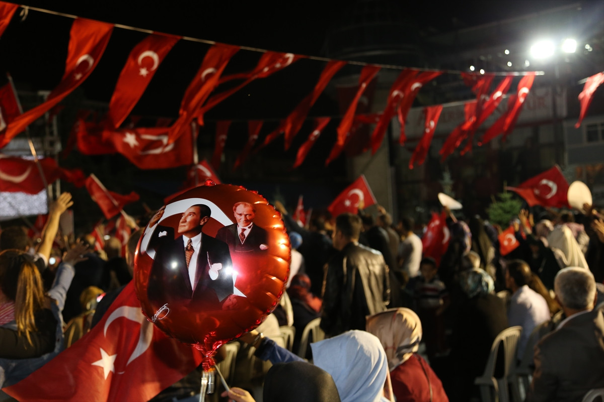 Erzurum'da Yakutiye Kent Meydanı'nda ellerinde ellerinde Türk bayraklarıyla toplanan çok sayıda kişi, FETÖ aleyhine slogan attı. Kur'an-ı Kerim tilavetini dinleyen vatandaşlar sema gösterisi izledi.