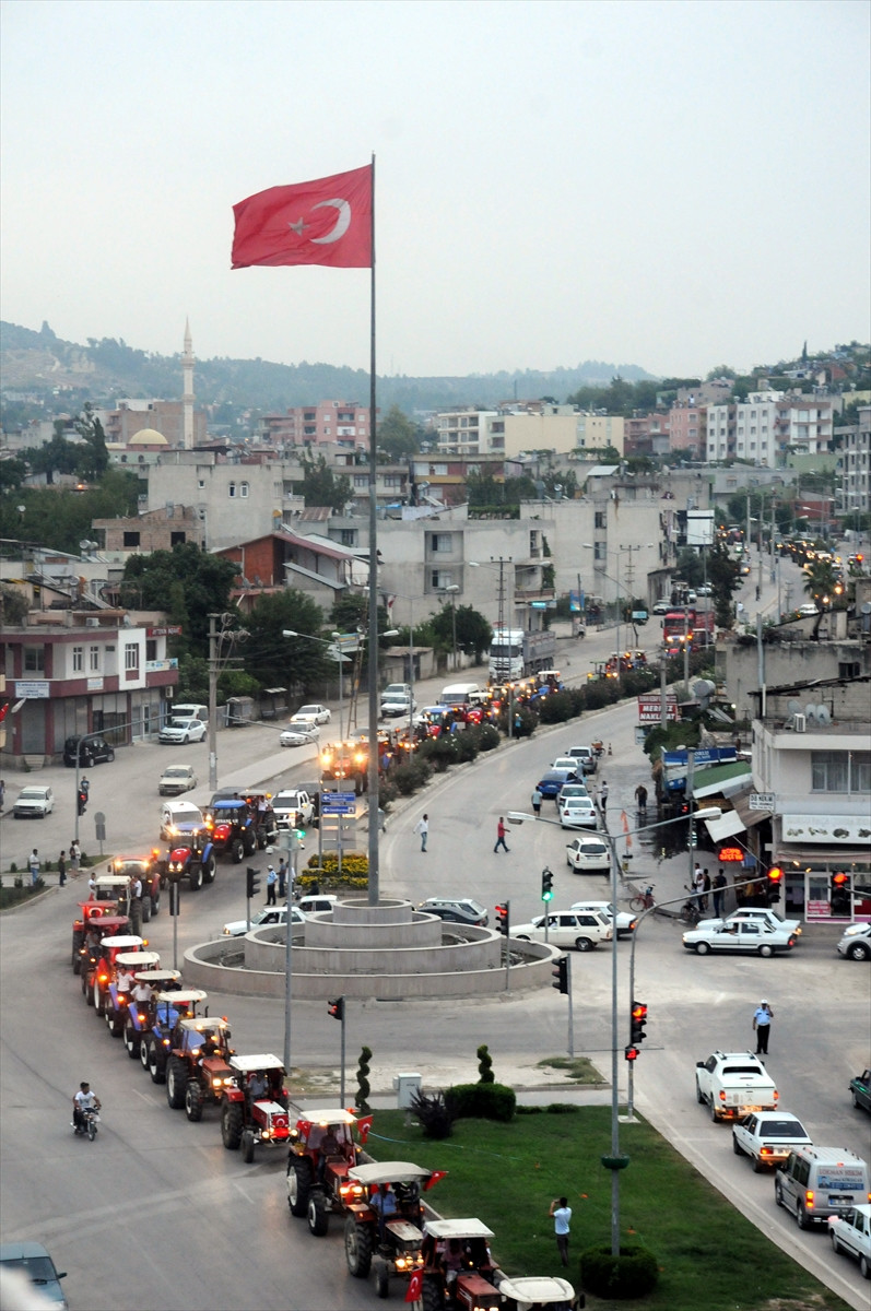 OSMANİYE (AA) - Osmaniye'nin Kadirli ilçesinde çiftçiler, Fetullahçı Terör Örgütü'nün (FETÖ) darbe girişimine tepki amacıyla 400 traktörle şehir turu attı.