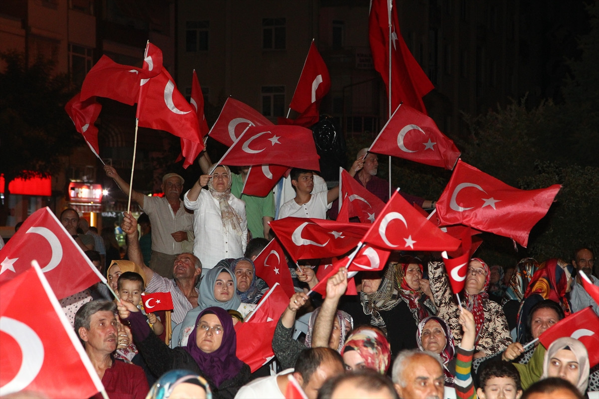 Ellerinde Türk bayrakları bulunan vatandaşlar, darbe karşıtı sloganları attı.