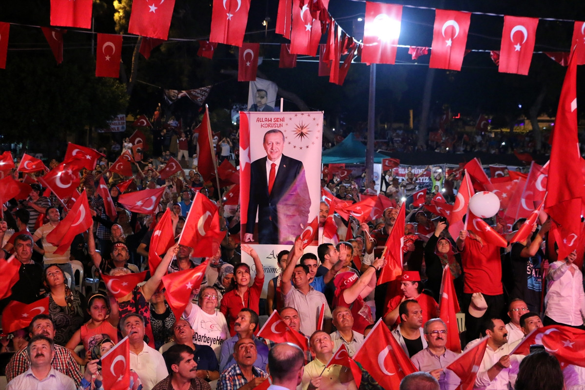 Başbakan Binali Yıldırım'ın, KKTC'nin başkenti Lefkoşa'da düzenlenen "Demokrasiye Destek Mitingi"ne telekonferansla canlı bağlanarak, Kıbrıs Türk halkına seslendiği konuşmasının dev ekrandan izlendiği demokrasi nöbetine, Vali Münir Karaloğlu, AK Parti Antalya Milletvekili Gökçen Özdoğan Enç, İl Emniyet Müdürü Cemil Tonbul, Türkiye Muhtarlar Konfederasyonu Genel Başkanı Hüseyin Akdeniz ve AK Parti İl Başkanı Rıza Sümer de destek verdi.