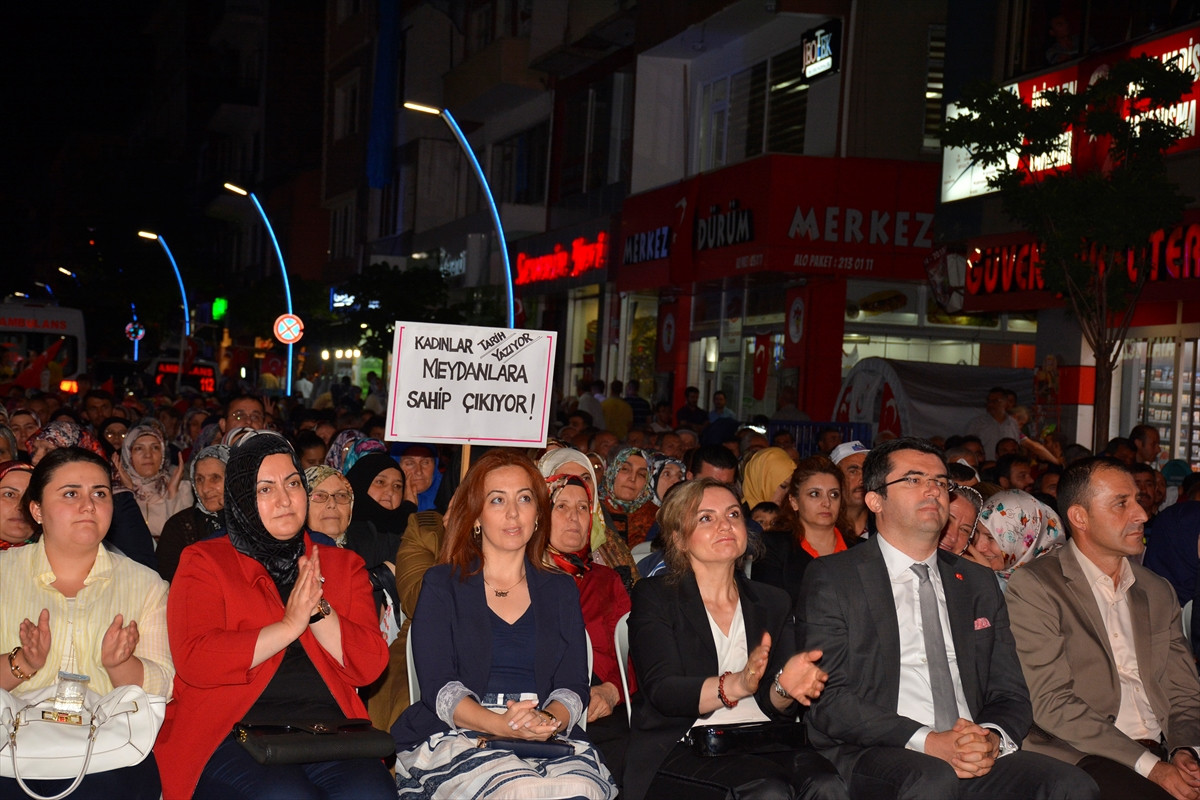 Demokrasi nöbetine Artvin Belediye Başkanı Mehmet Kocatepe, kamu kurum ve kuruluşlarının müdürleri, sivil toplum kuruluşlarının temsilcileri ile çok sayıda vatandaş katıldı.