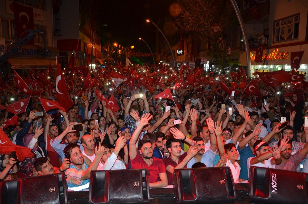 Kentte, 15 Temmuz'dan beri meydanları boş bırakmayan vatandaşlar, Kur'an-ı Kerim tilavetini dinledi, dua etti. Alanda ellerinde Türk bayraklarıyla toplanan vatandaşların nöbetine, sanatçı Uğur Işılak da sevilen şarkılarını seslendirerek destek verdi.