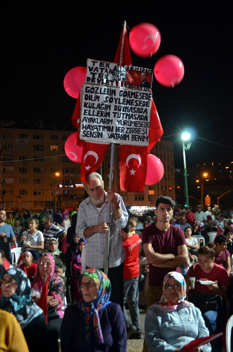 Cumhurbaşkanı Recep Tayyip Erdoğan'ın konuşmaları ile darbe girişimine ilişkin görüntülerden kesitlerin sunulduğu etkinlikte, İzmit ve Kartepe Belediyeleri tarafından alanda kurulan çadırlarda yiyecek ve içecek ikramında bulunuldu.