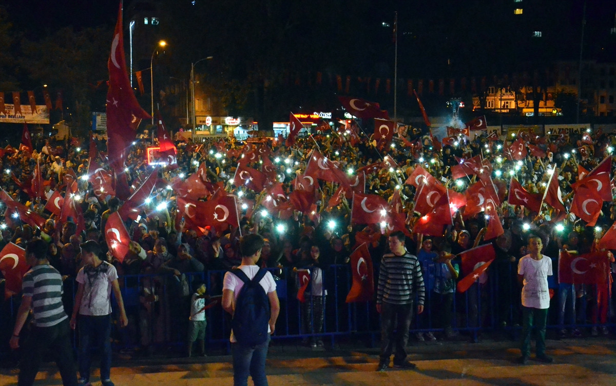 Kütahya'da binlerce vatandaş, "demokrasi nöbeti"nin son gününde ellerinde Türk bayraklarıyla meydanlara akın etti.