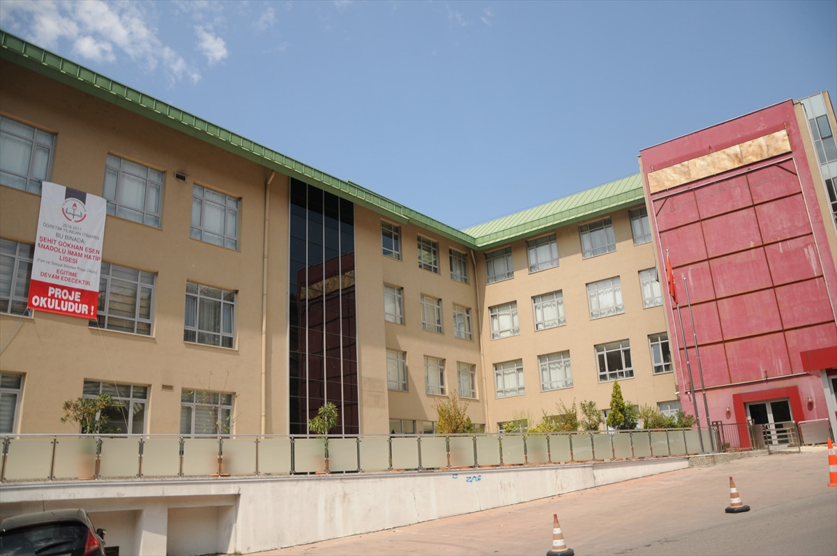 Binaya, "Şehit Gökhan Esen Anadolu İmam Hatip Lisesi (Fen ve Sosyal Bilimler Proje Okulu) eğitime devam edecektir' yazısının asıldığı görüldü.