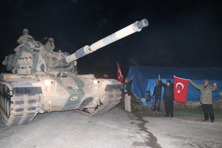 Sınıra yakın mahallelerde tırlardan indirilen tanklar, ellerinde Türk bayrağıyla bölgeye gelen mahalleliler tarafından alkışlar ve sloganlarla karşılandı.