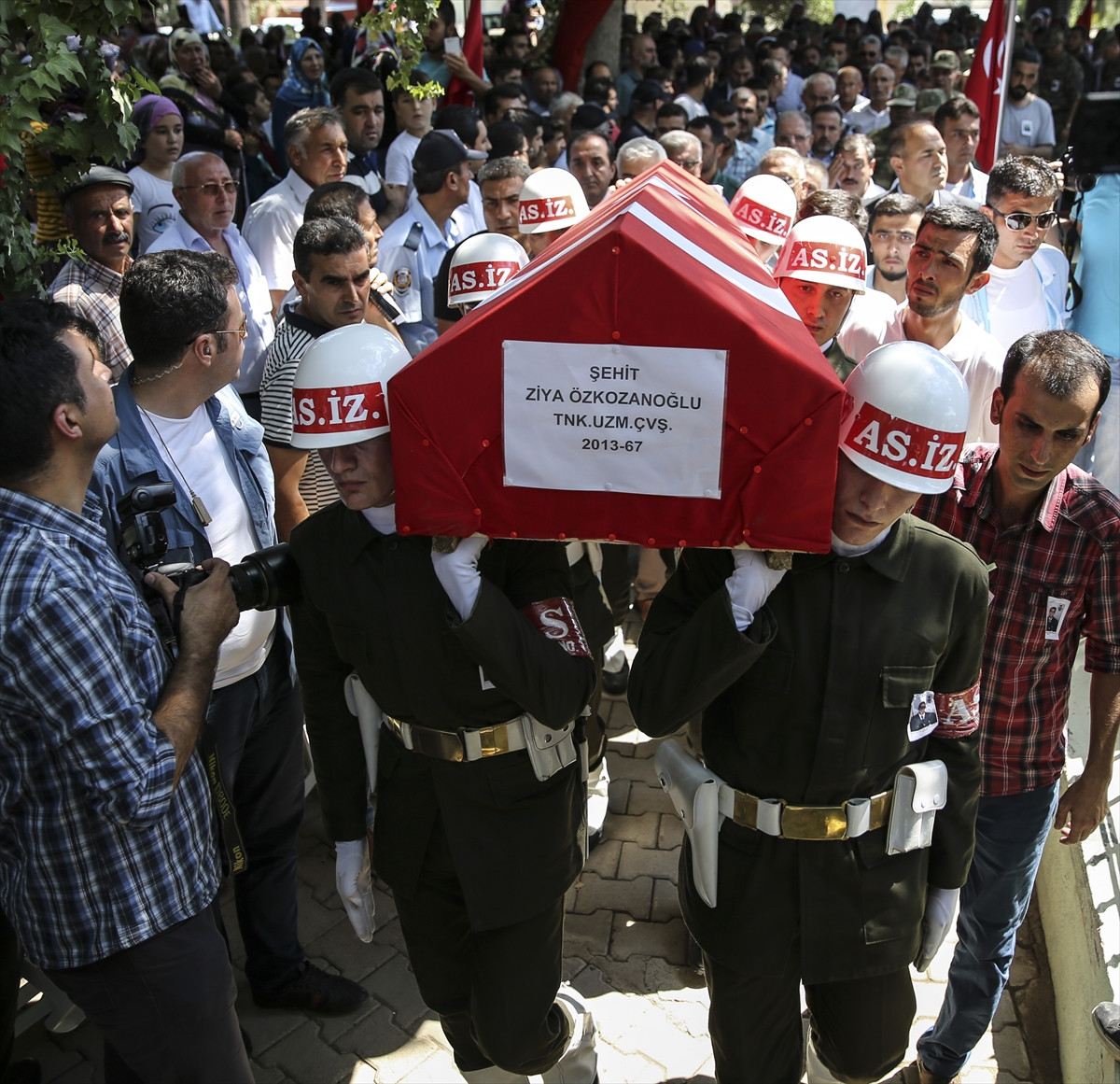 ADANA (AA) - Fırat Kalkanı Harekatı'nın 14. gününde, terör örgütü DAEŞ unsurlarının güdümlü roketlerle Türk Silahlı Kuvvetlerine (TSK) ait iki tanka yönelik saldırısı sonucu şehit düşen Uzman Çavuş Ziya Özkozanoğlu'nun cenazesi, Adana'nın Kozan ilçesinde defnedildi.
