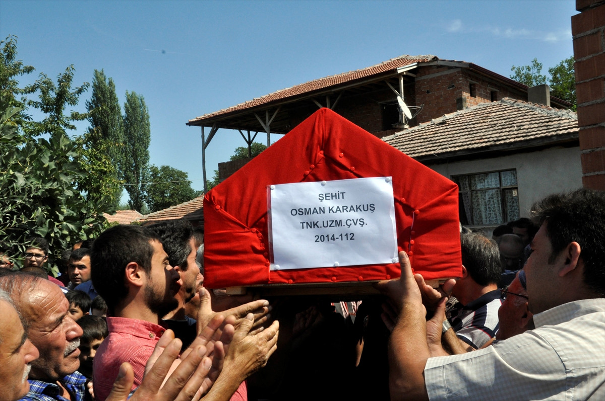 Fırat Kalkanı Harekatı'nda terör örgütü DAEŞ mensuplarınca güdümlü roketlerle Türk Silahlı Kuvvetlerine (TSK) ait iki tanka yönelik saldırıda şehit düşen Tankçı Uzman Çavuş Osman Karakuş'un cenazesi, Amasya'nın Suluova ilçesinde toprağa verildi. Askeri uçakla Merzifon 5. Ana Jet Üssüne getirilen 26 yaşındaki şehidin naaşı, Suluova Belediyesine ait cenaze nakil aracıyla Eraslan köyündeki babaevine götürüldü. Şehidin ailesi, Türk bayrağıyla örtülü tabuta sarılarak gözyaşı döktü. Helallik alınmasının ardından şehidin naaşı, yakınlarının ve köy halkının omuzlarında törenin yapılacağı köy camisine götürüldü. Şehidin babası Osman Karakuş, tören boyunca dik durmaya çalıştı. Baba Karakuş, "Dik durun, ağlamayın, ben düşmanları sevindirmeyeceğim, ağlamayacağım." dedi. Anne Ayfer ve şehidin kardeşi Okan Karakuş gözyaşlarına hakim olamadı. Şehidin eşi Merve Karakuş, tabuta sarılarak ağladı. İl Müftüsü İsmail İpek'in kıldırdığı namazın ardından şehit Uzman Çavuş Karakuş'un naaşı, Eraslan Köyü Mezarlığı'na defnedildi. Törene şehidin ailesi ve yakınları ile Amasya Valisi Salih Işık, AK Parti Amasya Milletvekili Haluk İpek, 15. Piyade Eğitim Tugay Komutanı Kurmay Albay Zafer Uğur, Amasya Belediye Başkanı Cafer Özdemir ile çok sayıda vatandaş katıldı.
