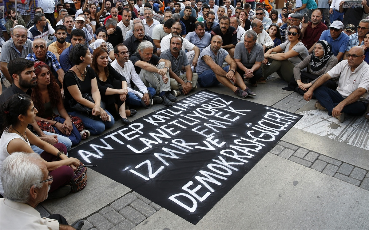 İZMİR (AA) - Gaziantep'teki terör saldırısı, İzmir'de oturma eylemiyle protesto edildi.