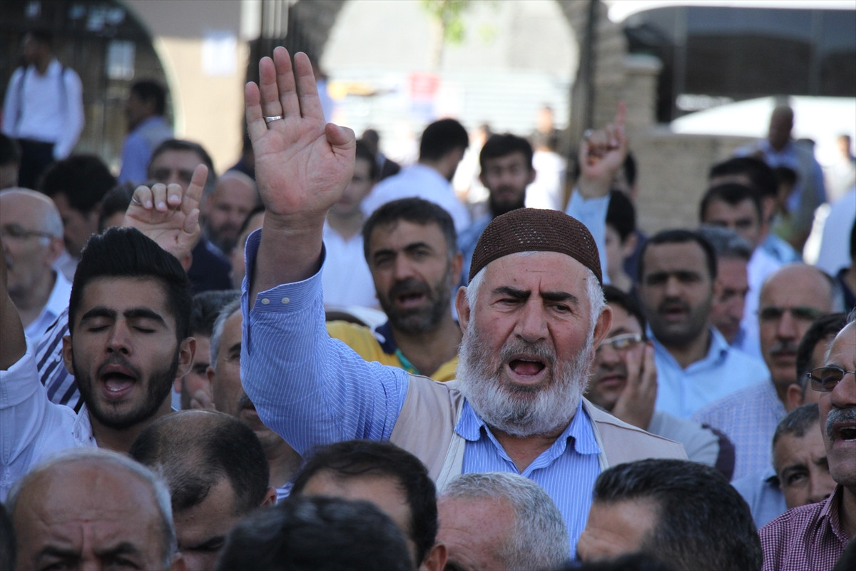 Hazreti Ömer Camisi'nde kılınan ikindi namazının ardından avluda toplanan grup, "Kahrolsun DAEŞ", "Kahrolsun PKK", "Teröre karşı omuz omuza" sloganları attı.