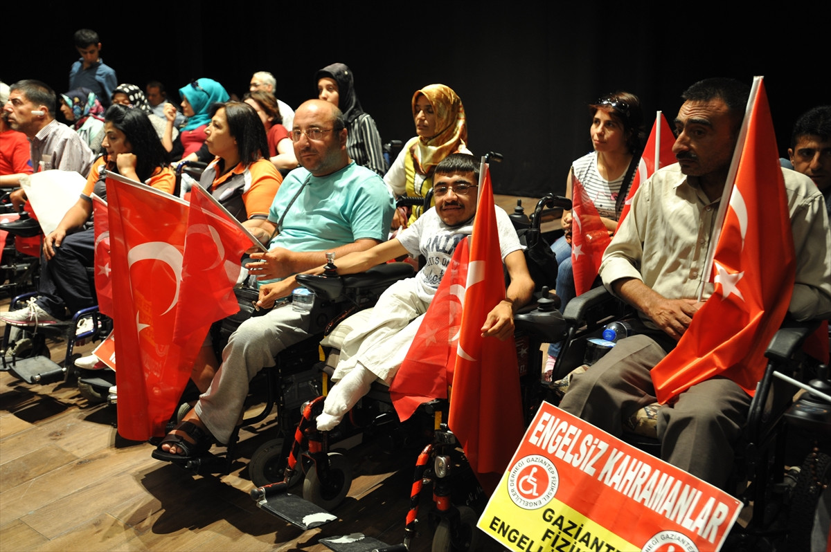 GAZİANTEP (AA) - Gaziantep'te engelli vatandaşlar milli birlik ve beraberliğe vurgu yaparak Fetullahçı Terör Örgütü'nün (FETÖ) darbe girişimini protesto etti.