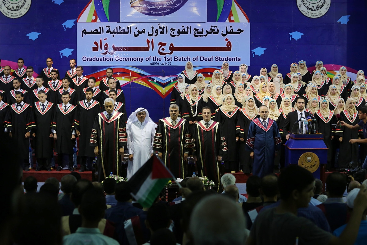 Körfez İşbirliği Teşkilatı (KİK), Katar El-Fahura eğitim kampanyası tarafından finanse edilen, Katar ve Filistin Kızılay Örgütleri ile farklı kurumlar tarafından hayata geçirilen proje kapsamında İslam Üniversitesinde ön lisans düzeyinde eğitim gören 81'i kız 33'ü erkek olmak üzere 114 işitme engelli ve işitme zorluğu çeken öğrenci mezun oldu.