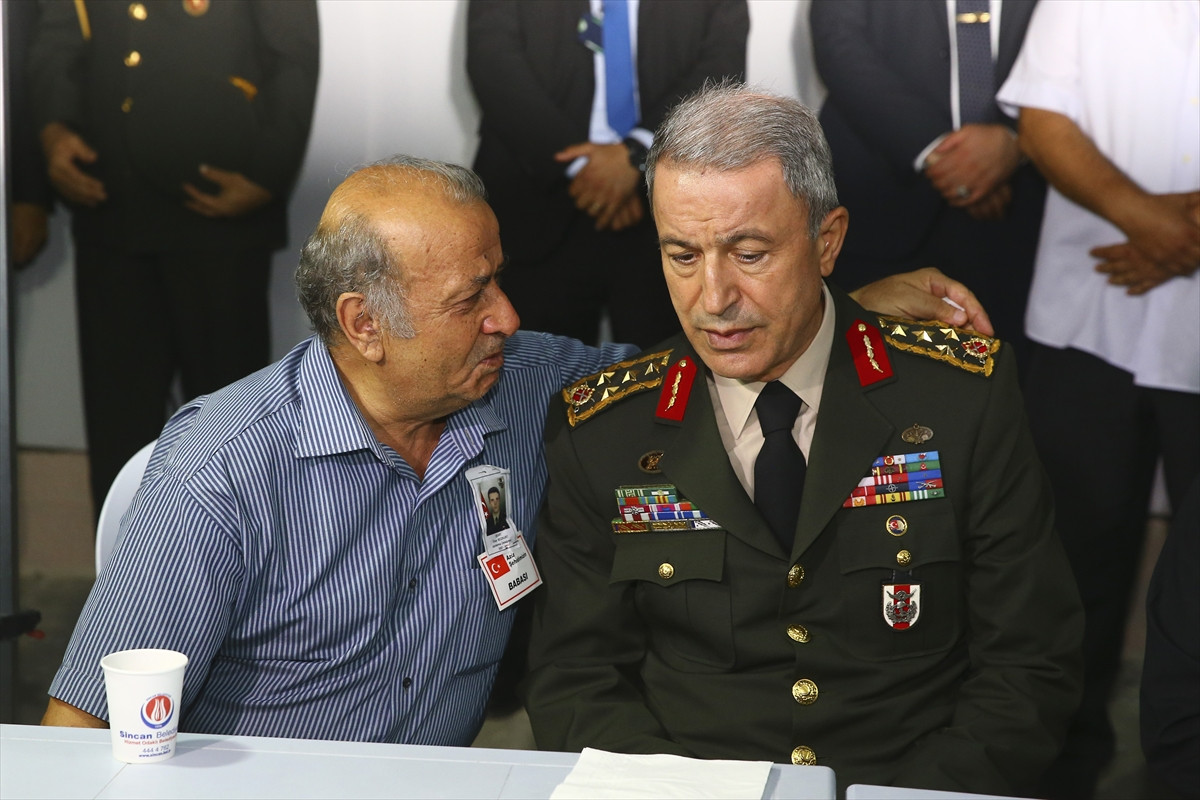 Şehidin babası ile sohbet eden Orgeneral Akar, yakınlarına başsağlığı ve sabır diledi.