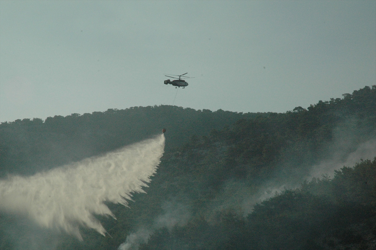 Yangına, İzmir Orman Bölge Müdürlüğü bünyesindeki 3 helikopter, 2 uçak ve 12 arazözle müdahale edildi.