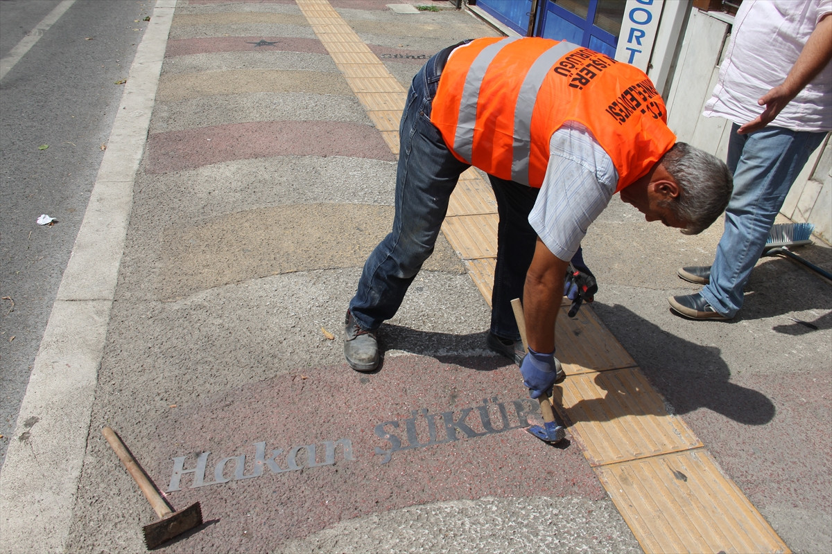 EDİRNE (AA) - Fetullahçı Terör Örgütü'nün (FETÖ) 15 Temmuz darbe girişimine ilişkin soruşturması kapsamında hakkında yakalama kararı bulunan eski milletvekili, Galatasaraylı futbolcu Hakan Şükür'ün adı, yazılı bulunduğu kaldırımdan kaldırıldı.