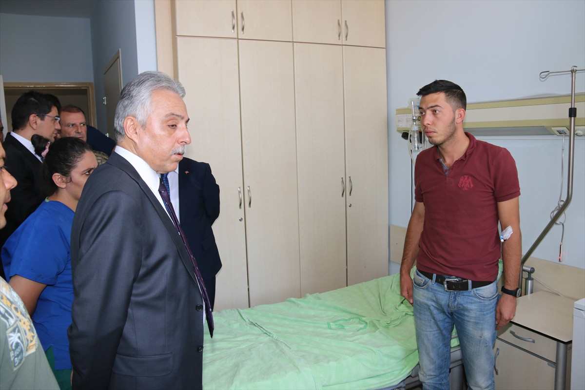 HAKKARİ (AA) - Hakkari Valisi Cüneyit Orhan Toprak, PKK'lı teröristlerce gerçekleştirilen bombalı saldırıda yaralanan polis, asker ve vatandaşları ziyaret etti.