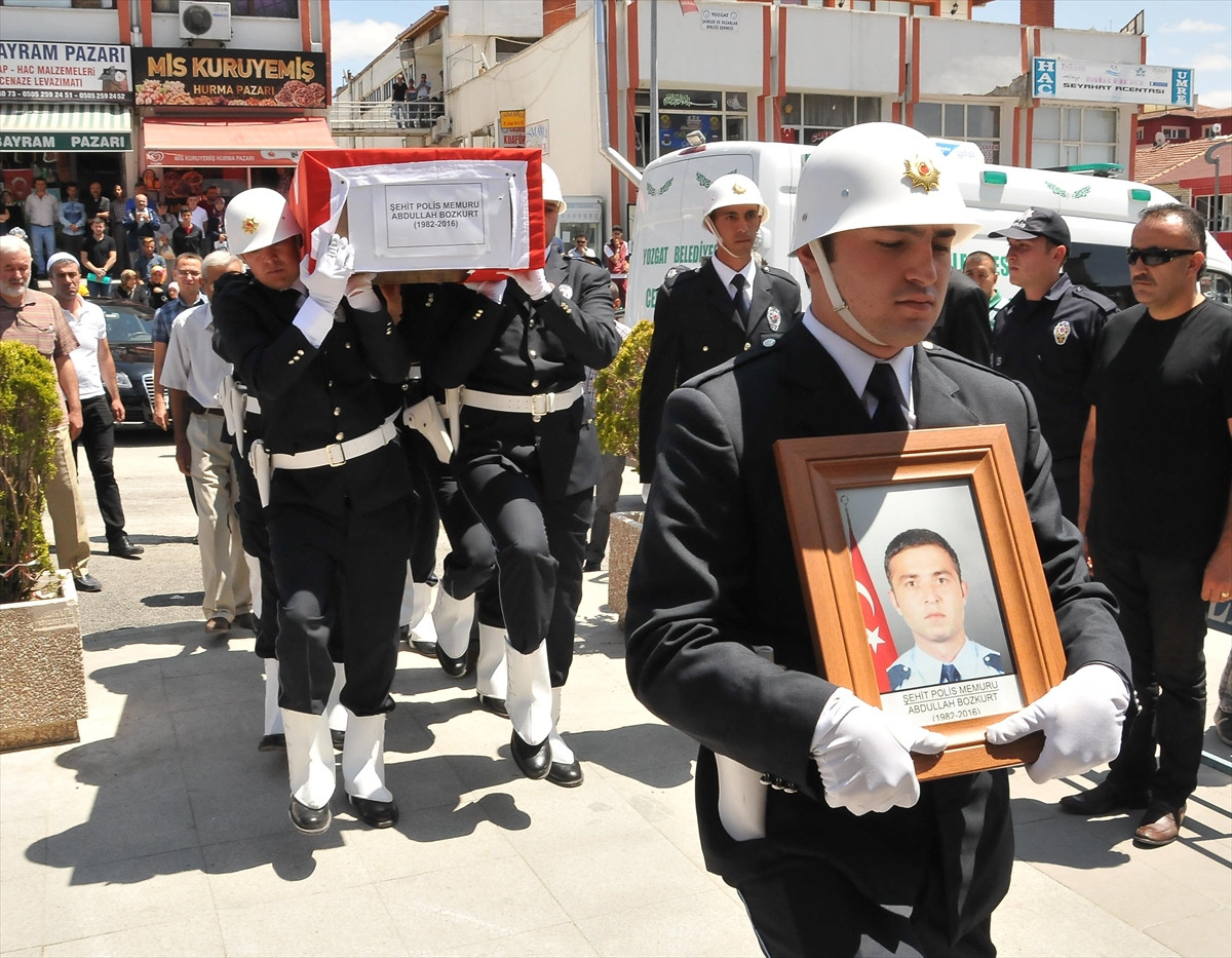 YOZGAT (AA) - Hakkari'de, terör örgütü PKK mensuplarının patlayıcı yüklü araçla gerçekleştirdiği saldırıda şehit düşen polis memuru Abdullah Bozkurt'un (34) cenazesi, memleketi Yozgat'ta son yolculuğuna uğurlandı.