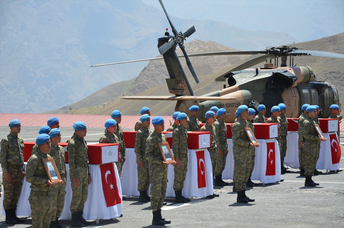 Hakkari İl Müftüsü M. Feysal Geylani'nin ettiği duanın ardından şehit Jandarma Teğmen Selim Coşkun (Adana), Jandarma Astsubay Kıdemli Çavuş İbrahim Betin (Afyonkarahisar), Jandarma Uzman Çavuşlar Sercan Özkul (Balıkesir), Hasan Keleş (Sakarya), Samet Aktaş (Bursa), Mustafa Tünel (İstanbul), Hüsnü Erkut (Tokat), Jandarma Astsubay Çavuş Bekir Eren Deniz'in (Çorum) naaşları helikopterle Van'a uğurlandı. Törende şehit askerlerin silah arkadaşları gözyaşı döktü.