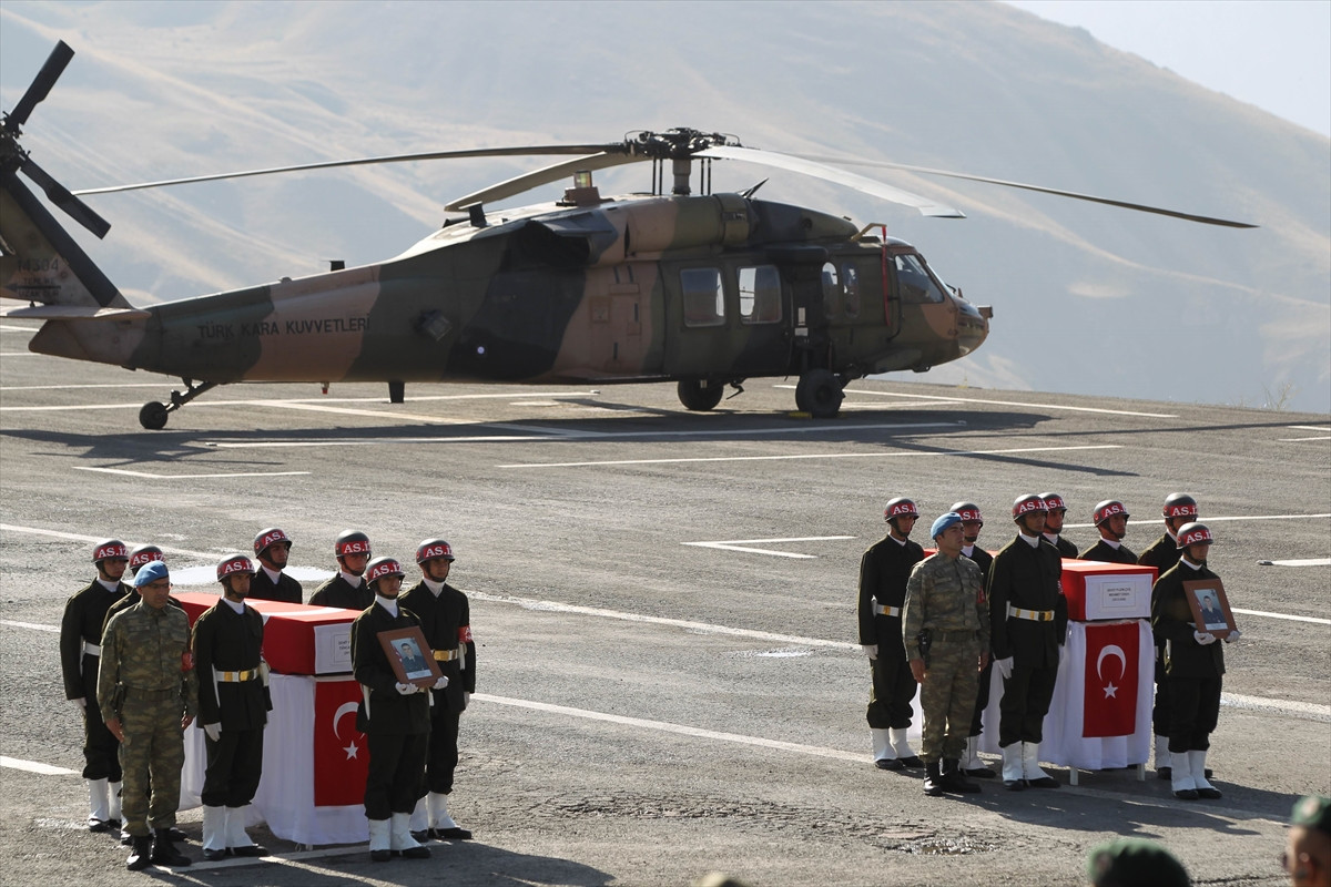 Hakkari İl Müftüsü M. Feysal Geylani'nin ettiği duanın ardından şehitler Uzman Çavuş Tuncay Küssen ile Uzman Çavuş Mehmet Esen'in naaşları memleketlerine gönderilmek üzere helikopterle Van'a uğurlandı.