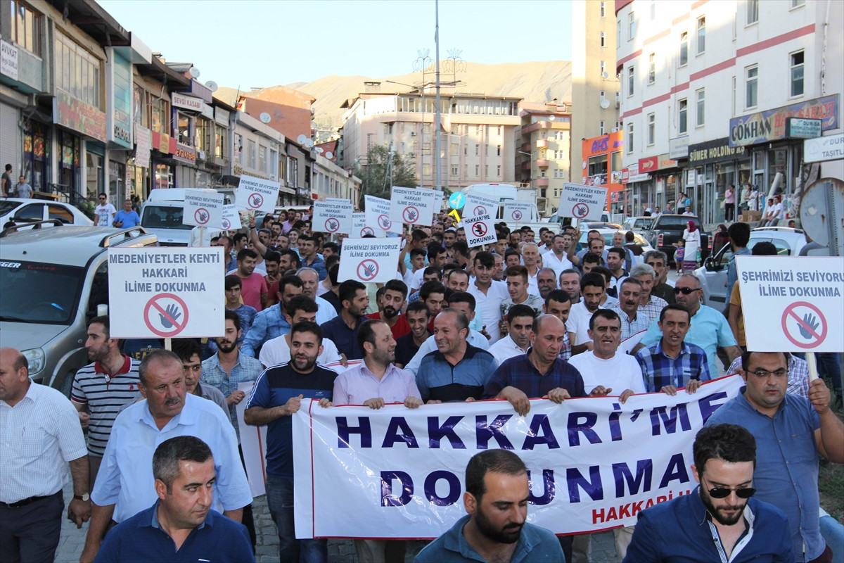 "Hakkari ildir, il olarak kalacak", "Hakkari uyuma iline sahip çık", “Medeniyetlerin kenti Hakkari ilime dokunma”, “Şehrimizi seviyoruz, ilime dokunma”, “Hakkari'me dokunma” yazılı pankart taşıyan grup, çevre yoluna oradan da Cumhuriyet Caddesi'ne geçerek basın açıklaması yaptı.