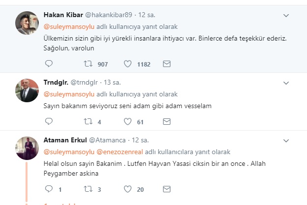 Sosyal medyada yayılan işkence görüntülerine hemen müdahale eden Süleyman Soylu’ya hayvanseverler tarafından teşekkür mesajları yağdı.