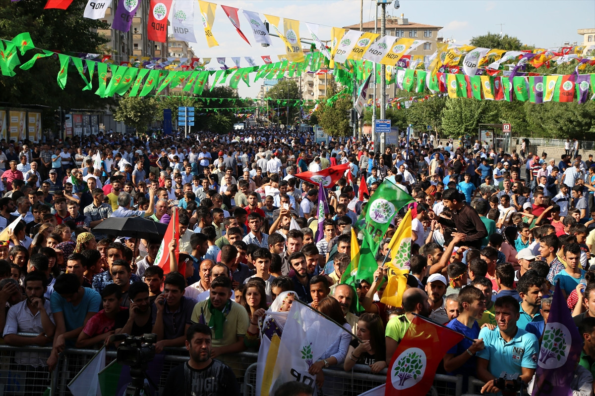Geniş güvenlik önlemlerinin alındığı mitingde, alana girenler polis tarafından arandı. Terör örgütü PKK'nın elebaşı Abdullah Öcalan lehine sloganlar atılan ve posterleri taşınan miting alanında, "Demokrasiye sahip çıkıyorum, darbeye direniyorum", "Darbeye karşı demokratik direniş" ve "Her türlü darbeye hayır" pankartları asıldı.