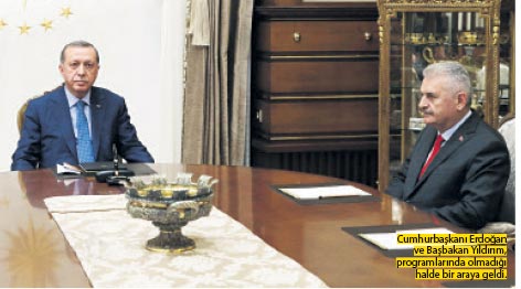 Ankara’da büyük yankı uyandıran kabine revizyonu, Cumhurbaşkanı Erdoğan ile Başbakan Yıldırım’ın dün akşam saat 19.00’da gerçekleşen görüşmesinden sonra açıklandı. Her iki ismin programlarında olmamasına rağmen, Erdoğan’ın Yıldırım’ı kabul edeceği, 18.30 sularında duyuruldu. Yıldırım’ın eski bakanlarla bir araya geleceği yemek öncesi gerçekleşen zirve, Ankara kulislerini de hareketlendirdi. Yaklaşık yarım saat süren görüşmenin ardından Yıldırım,Cumhurbaşkanlığı Külliyesi’nde kameraların karşısına geçti. Ancak, açıklamadan son dakikada haberdar olan gazeteciler toplantıyı takip edemedi. Yıldırım, Külliye’deki açıklamasını basın mensupları olmadan yaptı ve bu görüntü daha sonra servis edildi.