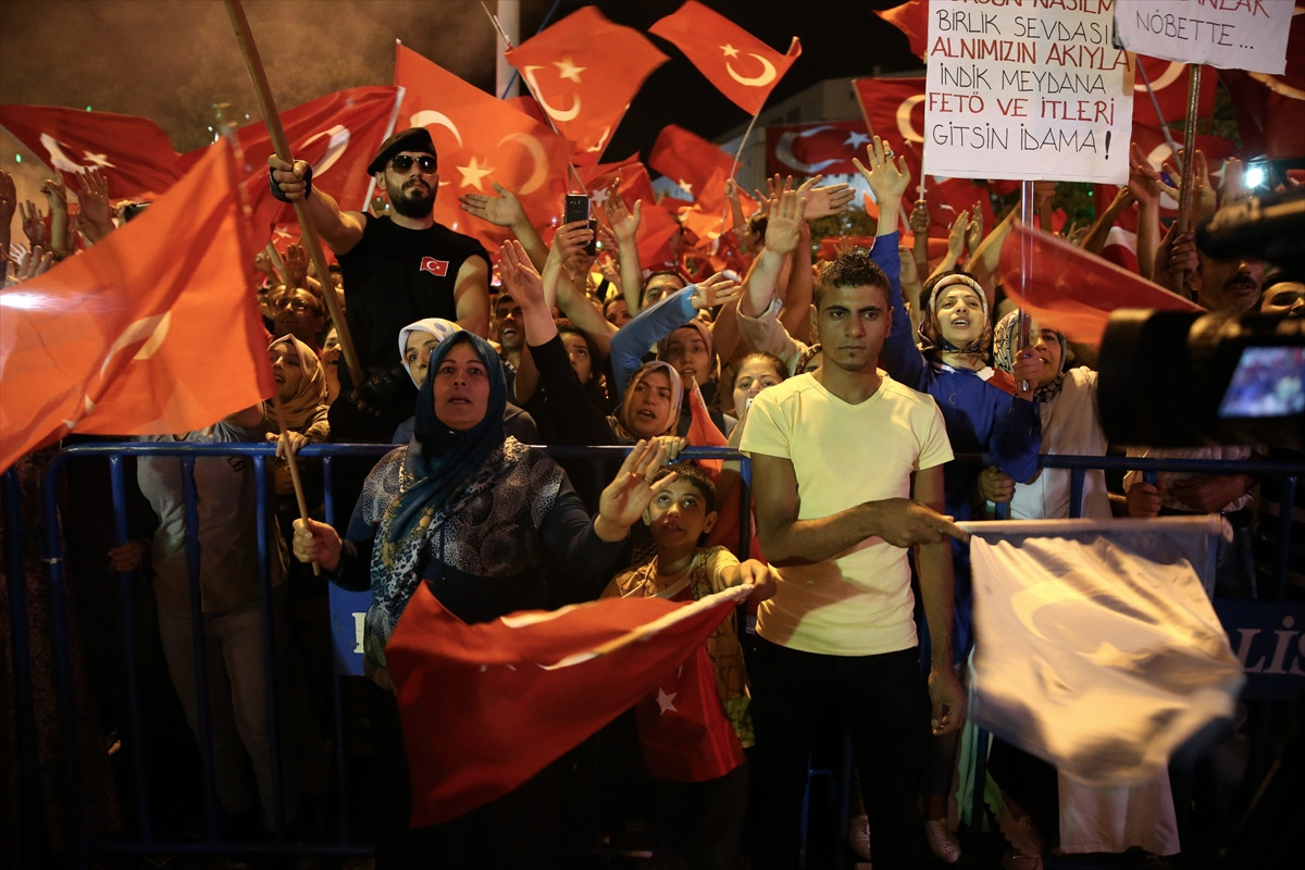 GAZİANTEP (AA) - Gaziantep'te Fetullahçı Terör Örgütünün (FETÖ) darbe girişiminin ardından "demokrasi nöbeti" tutanlar arasında, ülkelerindeki iç savaştan kaçarak Türkiye'ye sığınan Suriyeli aileler de bulunuyor.