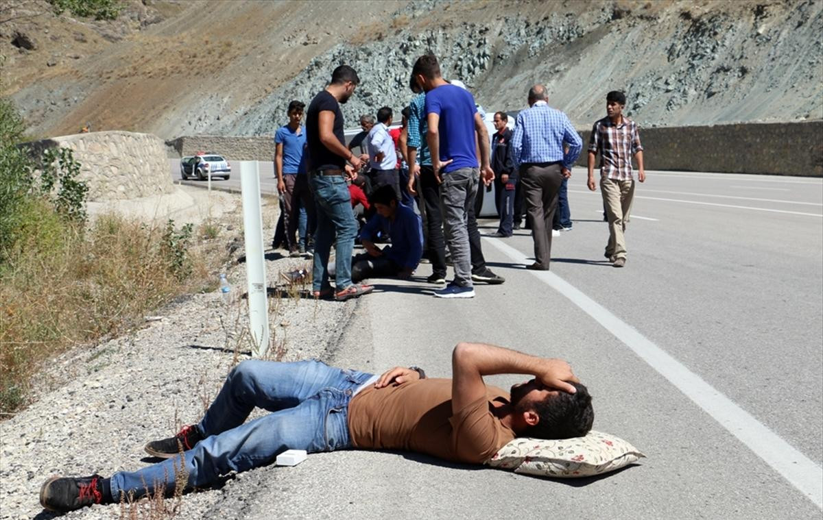 Erzurum'un Aşkale ilçesinde inşaat işçilerini taşıyan minibüsün devrilmesi sonucu biri ağır 5 kişi yaralandı. Alınan bilgiye göre, Aşkale-Bayburt karayolunda Yüksel Başboğ idaresindeki 04 P 5742 plakalı minibüs, Pırnakapan mevkisi yakınlarında virajı alamayarak devrildi. Kazada sürücü ile araçtaki Erhan Çelik, Murat Karaman, Cihan Erkan ve Behçet Uygunlu...
