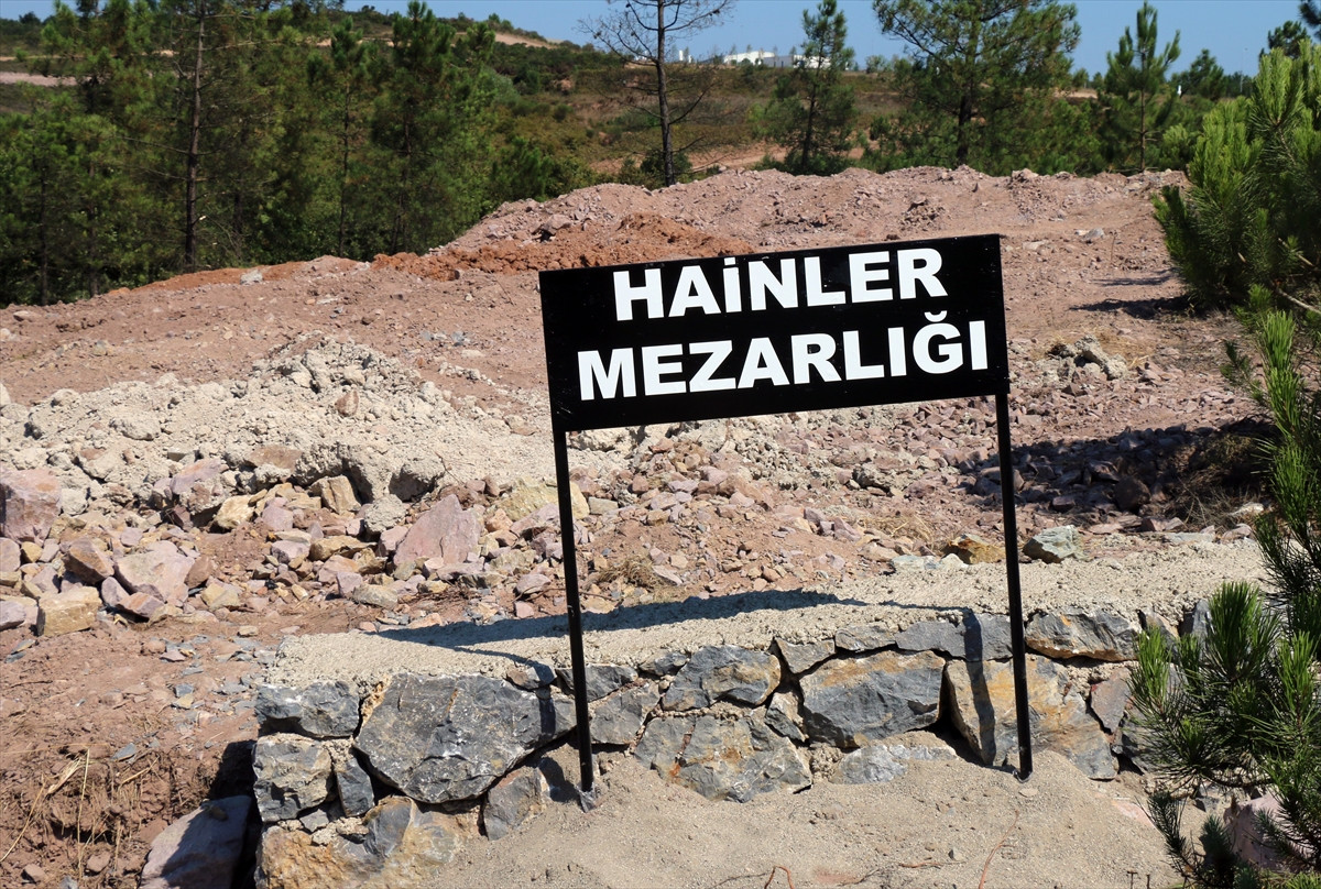 Köy çıkışındaki bir alana yapılan mezarlık girişine, "Hainler Mezarlığı" tabelası bu sabah İBB ekipleri tarafından yerleştirildi.