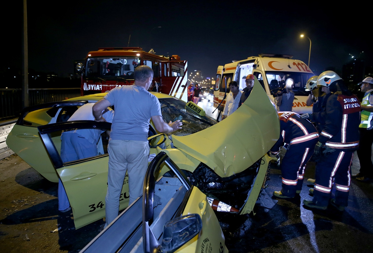 İSTANBUL (AA) - İstanbul'da, 15 Temmuz Şehitler Köprüsü girişinde yol kenarındaki bariyerlere çarpan taksinin sürücüsü yaralandı.