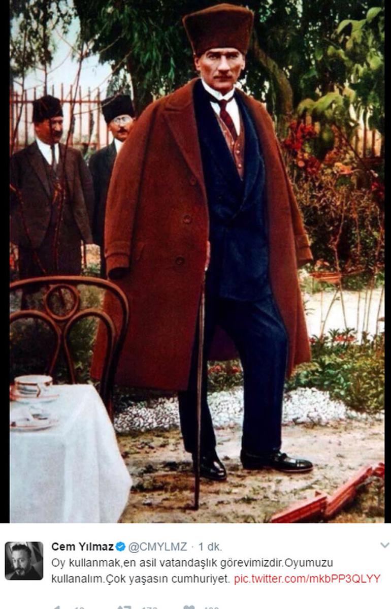 Seçimlere saatler kala referandum için bir paylaşımda sevilen komedyen Cem Yılmaz'dan geldi. Cem Yılmaz twitter hesabından Attürk'ün fotoğrafını paylaştı.