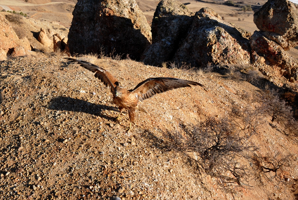 KIRIKKALE (AA) - Kırıkkale'de aç ve bitkin halde bulunan kızıl şahin, bir aylık tedavisinin ardından doğaya salındı.Bahşılı ilçesi Yeşilköy Mahallesi Ortakale mevkisinde çocuklar tarafından bitkin halde bulunan kızıl şahin, veteriner Yusuf Uyar tarafından tedavi edildi. Bir aylık tedavi süreci sonrası tekrar uçabilecek duruma gelen şahin, Cin Kayalar mevkisinde doğaya...