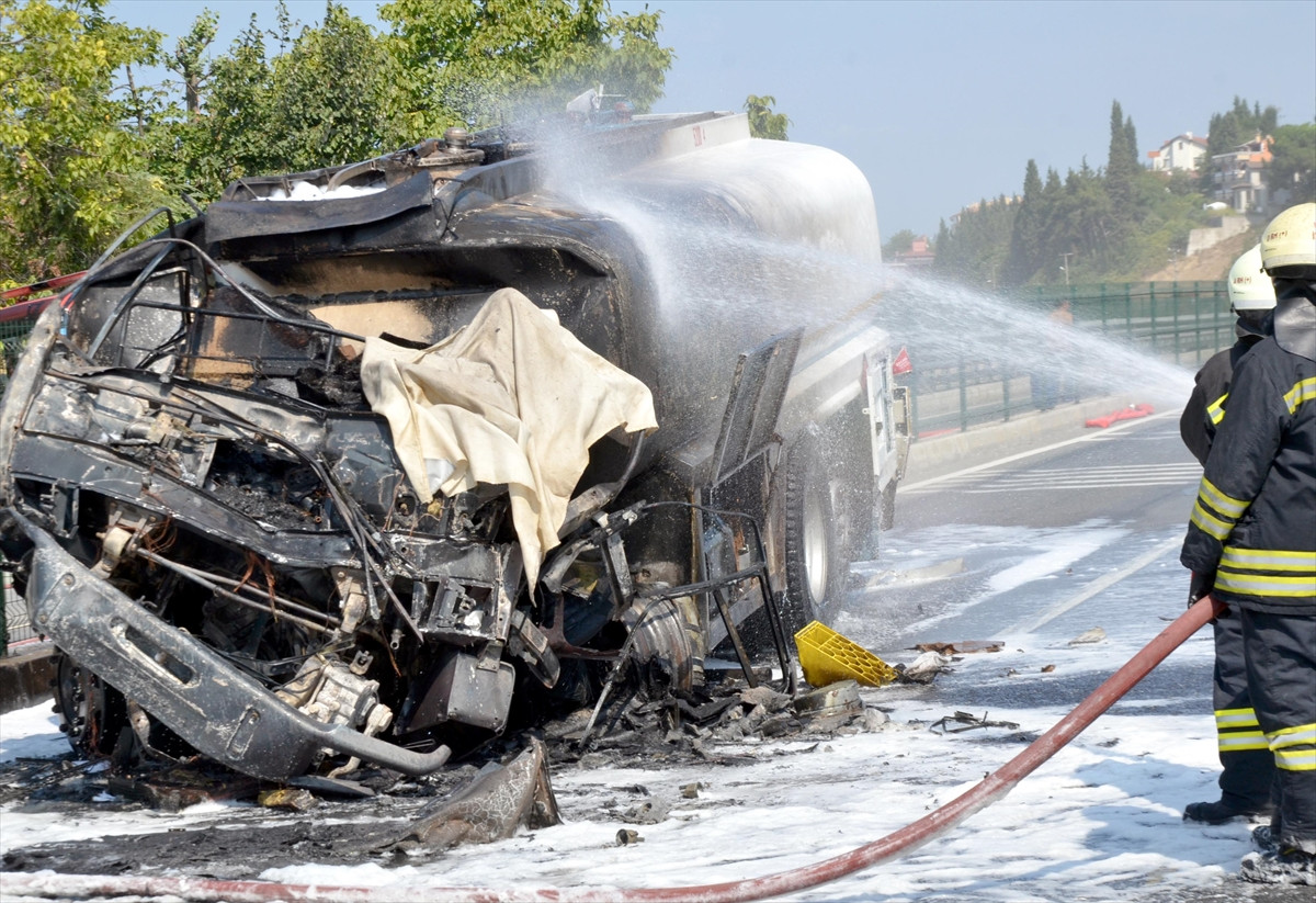 KOCAELİ (AA) - Kocaeli'nin Karamürsel ilçesinde kazanın ardından alev alan tankerin sürücüsü yanarak hayatını kaybetti.