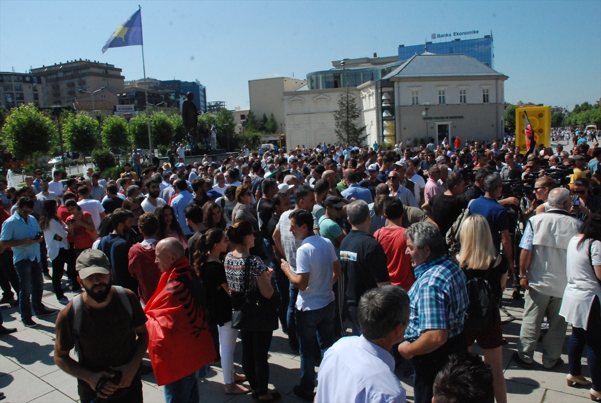 PRİŞTİNE (AA) - Kosova'daki muhalefet partilerinden Kendin Karar Al Hareketi'nin çağrısı üzerine toplanan bir grup, meclis genel kurulunda görüşülmesi planlanan Kosova ile Karadağ sınırının yeniden düzenlenmesine ilişkin antlaşmayı protesto etti.