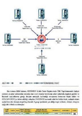 İddianamede yer alan tablo ve şemalarda kripto FETÖ askerlerinin tek tek hangi telefon kulübesinden, hangi tarih ve saatte, kaç kez arandığı, görüşmelerin süreleri tüm ayrıntıları ile gösterildi. Şüphelilerin, hangi kuvvet komutanlığında ne konumda görev yaptığı da belirtildi. İstanbul'daki 424 ankesörlü hattın tek tek bu şekilde şeması çıkarıldı.