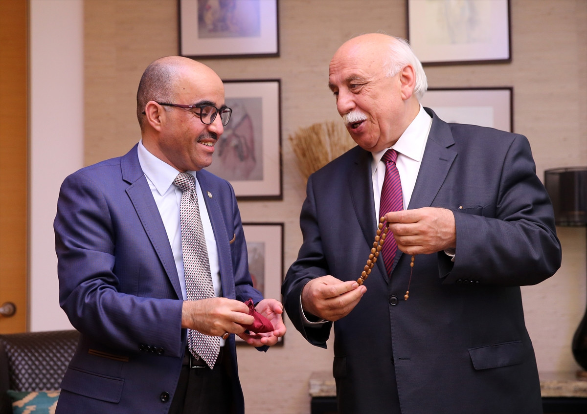 Konuşmalar sonrasında Fuheyd, Bakan Avcı'ya özel bir ağaçtan yapılan tespih hediye etti.