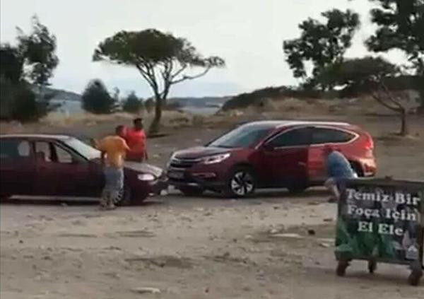 Olay, geçen çarşamba günü akşam saatlerinde, ilçe merkezine 2 kilometre mesafedeki İngiliz Burnu Mevkisi'nde meydana geldi. Eşiyle gezmek için İngiliz Burnu'na gelen emekli Albay Eşref Hatipoğlu, aracıyla alana inerken, aynı yere Çiğli ilçesinden gezmeye geldiği öğrenilen Sinan Akbal (35) ve Bilgin Emre'nin (34) bulunduğu araçla yolda karşı karşıya geldi. Taraflar arasında yol verme yüzünden başlayan sözlü tartışma, araçlardan inilince büyüdü. Sinan Akbal ve Bilgin Emre, Eşref Hatipoğlu'nun üstüne sopayla yürüdü. Bu durumu gören, uzun yıllar Doğu ve Güneydoğu Anadolu'da terörle mücadele birimlerinde görev yapan Eşref Hatipoğlu, beylik tabancasıyla önce havaya sonra yere ateş etti. Emekli albayın üstüne yürümeye devam eden Akbal, Hatipoğlu tarafından omzundan vuruldu. Akbal, ambulansla Çiğli Bölge Eğitim ve Araştırma Hastanesi'ne kaldırılarak tedaviye alındı, hayati tehlikesinin olmadığı açıklandı. Gözaltına alınan Eşref Hatipoğlu, işlemleri sonrası sevk edildiği adliyede tutuklandı. O anlar ise bir kişi tarafından cep telefonuyla görüntülendi.