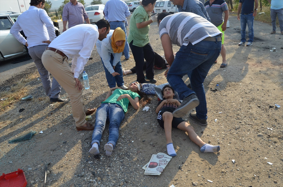 Edinilen bilgiye göre, Kula'dan Uşak yönüne giden Sıla Başyiğit'in (35) kullandığı 45 SS 660 plakalı otomobil, İzmir-Ankara karayolu Kalınharman mahallesi kavşağında refüjü aşıp karşı şeritten gelen Cihan Gültekin (51) yönetimindeki F-CG 4004 Almanya plakalı otomobille çarpıştı.