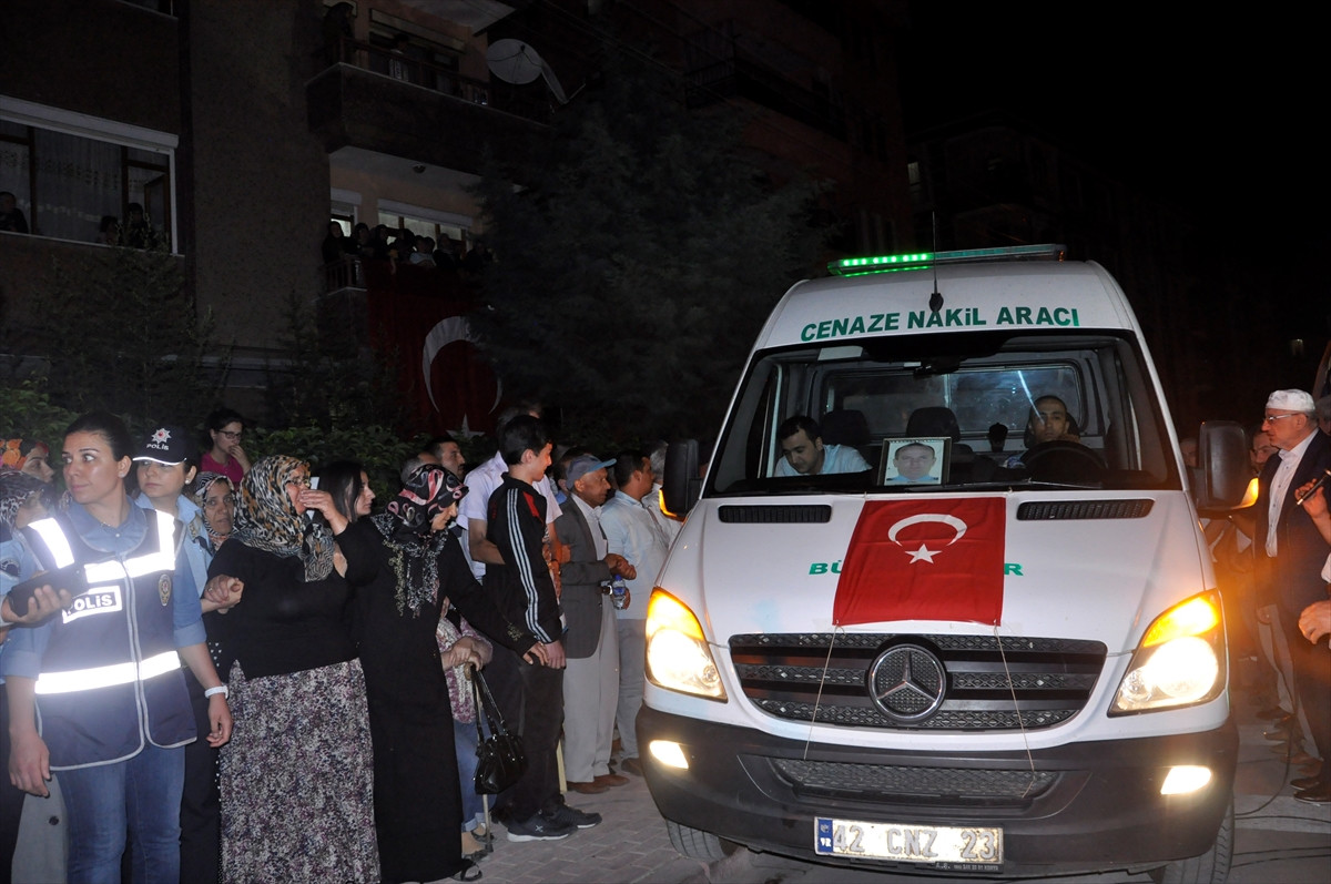 KONYA (AA) - Mardin'in Derik ilçesinde PKK'lı teröristlerce yola döşenen el yapımı patlayıcının zırhlı polis aracının geçişi sırasında infilak ettirilmesi sonucu şehit olan polis Ramazan Akyürek'in naaşı Konya'ya getirildi.